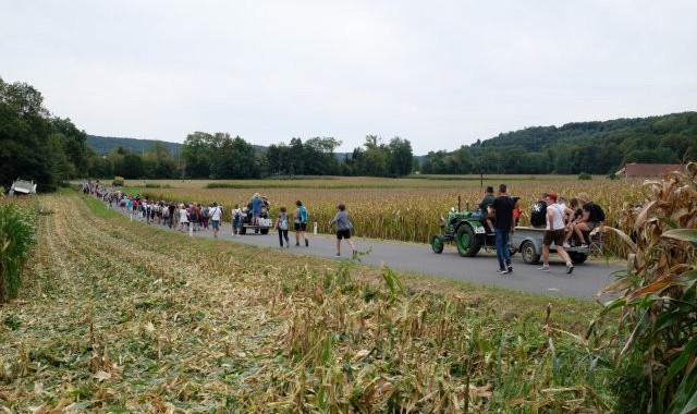 Nach dem feierlichen Start mit dem Segen unseres Pfarrers führte die rund sieben Kilometer lange Wanderung durch die herrliche Landschaft rund um Straden. Angeführt von Traktorveteranen, begleitet von den Edlseern, die unterwegs selbst musizierten, und bestens versorgt an den Labestationen der FF Schwabau und des Sportvereins Straden, war die Stimmung von Anfang an ausgelassen.